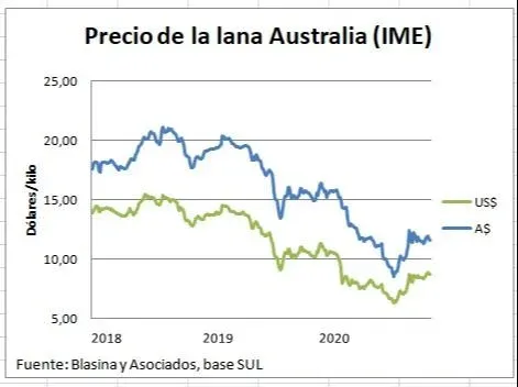 El precio que tiene la lana en Australia bajó respecto a la semana anterior, en el último remate del 2020, debido a que se dio un incremento en la oferta y a que hay una moneda local fortalecida.