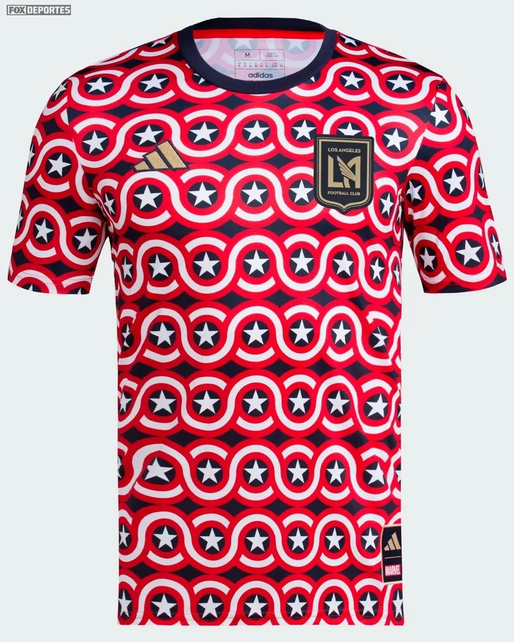 Se trata de una casaca de “pre-game”, que utilizan los equipos en el calentamiento previo a los partidos, inspirada en el escudo del Capitán América que el club utilizará en medio de un acuerdo que la MLS de Estados Unidos tiene con Marvel, la reconocida productora de tiras y series de superhéroes.