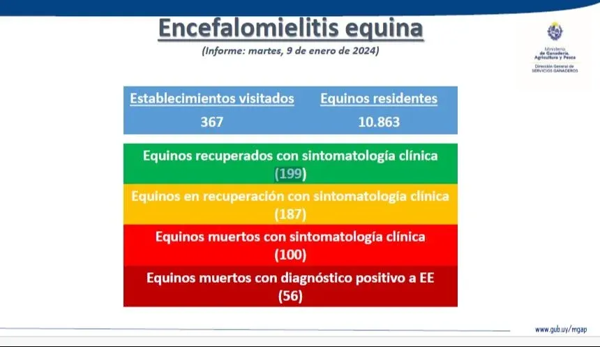 Asimismo, informó que Uruguay no presenta casos actuales de encefalomielitis en seres humanos.