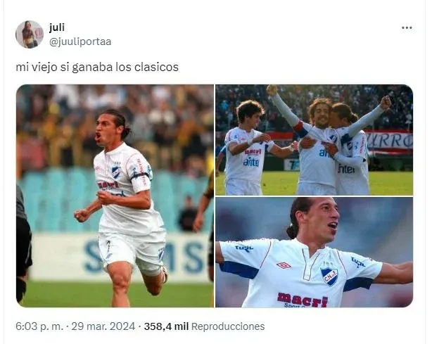 Julieta Porta, la hija de Richard Porta, exjugador de Nacional, publicó en X (ex Tweet) apenas terminado el partido con el siguiente mensaje: "Mi viejo sí ganaba los clásicos", con fotografías del Canguro festejando y junto al Chino Recoba, actual entrenador tricolor.