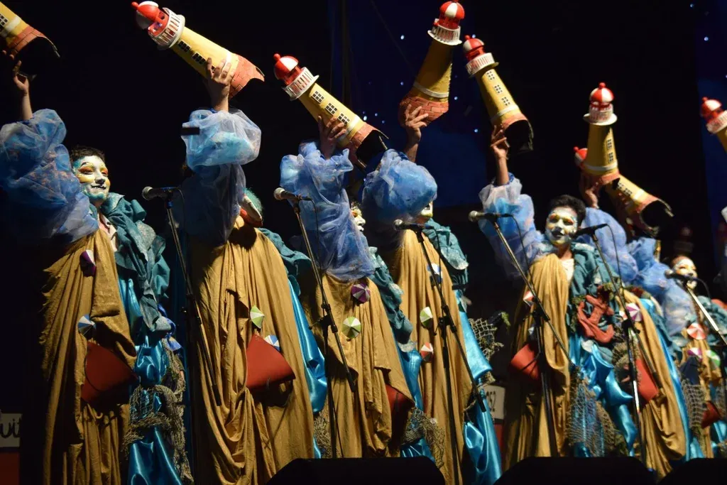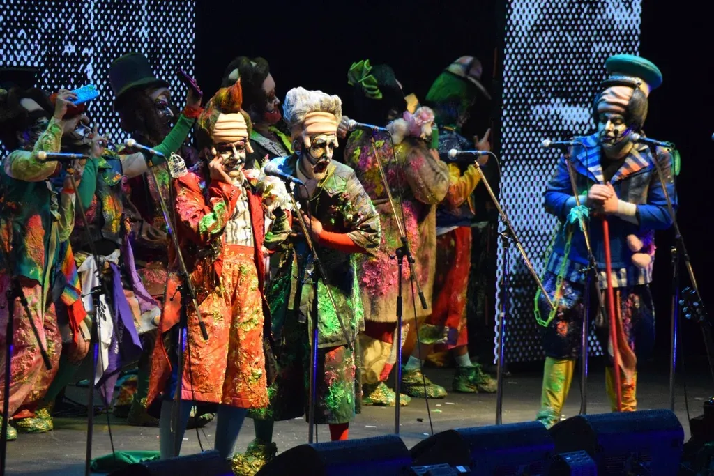 Intergantes de la murga Queso Magro, en el Teatro de Verano.