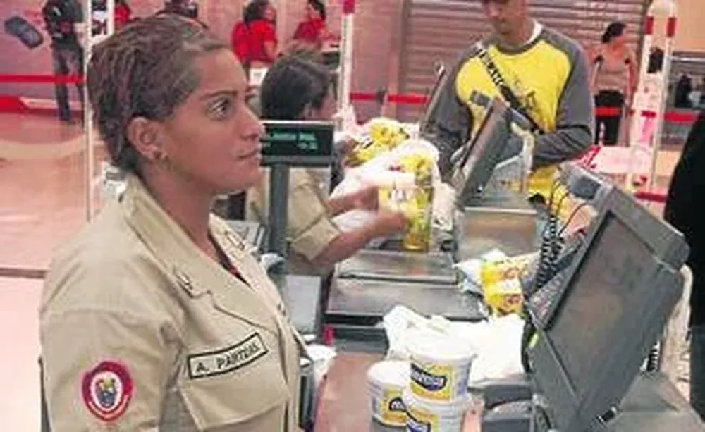 La escasez de productos de primera necesidad en Venezuela ha obligado al gobierno de Nicolás Maduro a tomar algunas medidas como el ingreso de los militares al área comercial, ocupando puestos vacantes en las cajas de los supermercados y en las gestiones de pago.
