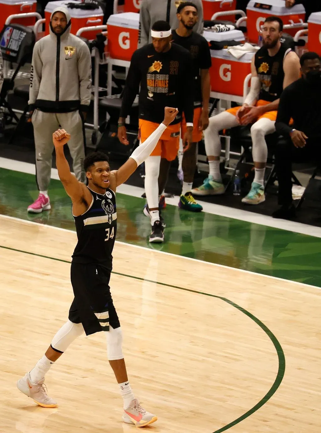 Antetokounmpo, quien fue elegido MVP (Jugador Más Valioso) de la final, anotó 10 puntos en el primer cuarto, mientras que los Suns lograron su menor cantidad de puntos en ese primer período de los playoffs.