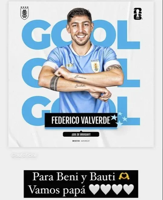 Luego publicó una fotografía del festejo de Valverde, con los nombres de sus dos hijos tatuados en los brazos.