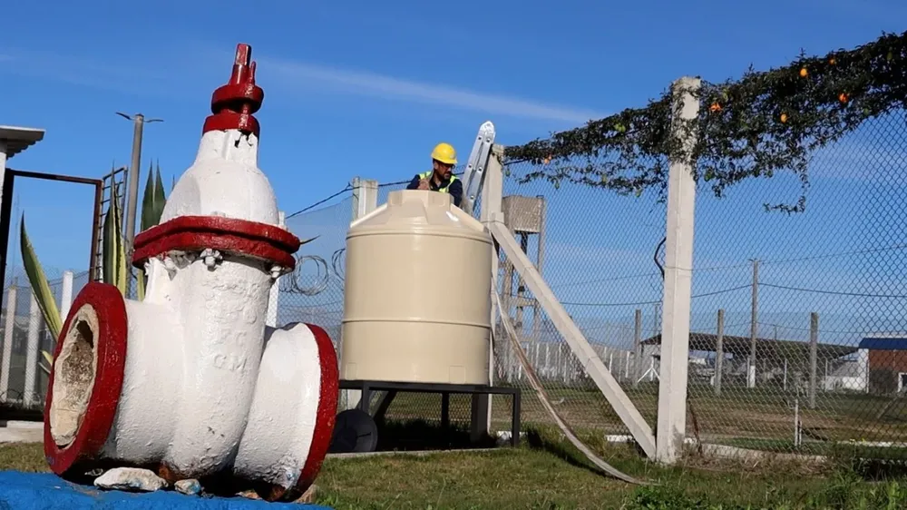 Cada uno de los tanques tiene una capacidad de 2.000 litros y la OSE diariamente va a suministrar agua potable a esos tanques que van a estar ubicados en forma estratégica para darle agua tanto para la confección de alimentos como para beber a las personas privadas de libertad”, informó el director del Instituto Nacional de Rehabilitación (INR), Luis Mendoza.