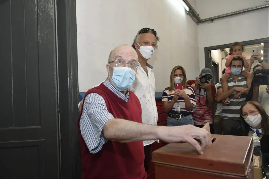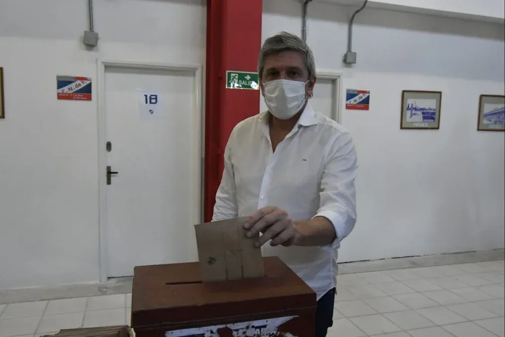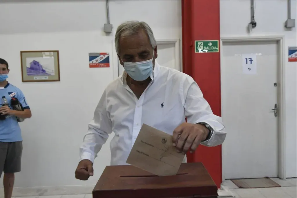 10:53. El candidato a vicepresidente de la lista 12 que impulsa a la presidencia a Raúl Giuria, Ariel Martínez, votó en el circuito 12 en el Gran Parque Central.