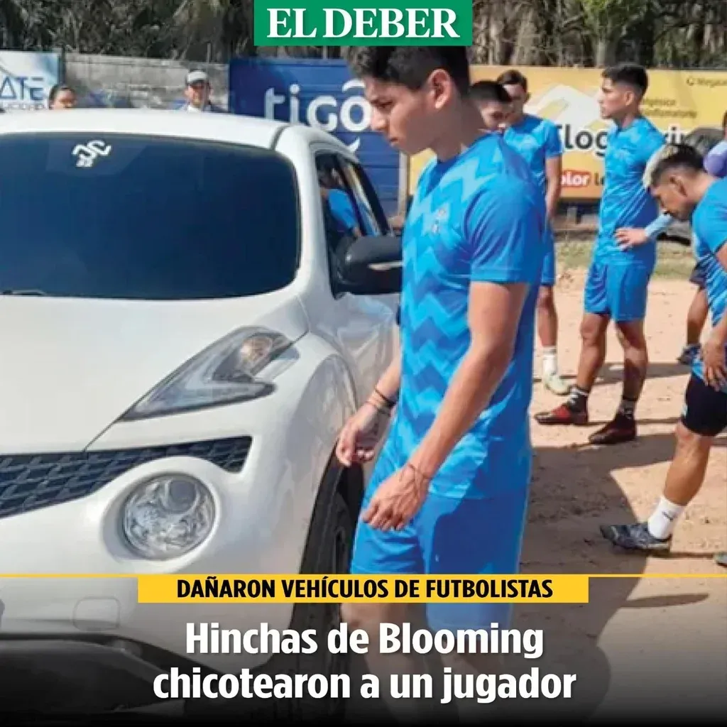 Además, varios de los vehículos de sus compañeros fueron dañados por las personas que vestían camisetas celestes, color que identifica al club.