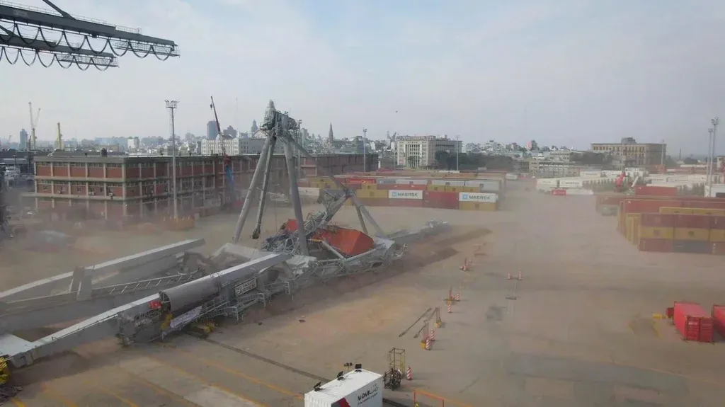 Tras varias semanas de preparativos y varios ajustes realizados en las últimas 96 horas, finalmente a las 11.42 de este sábado 24 de julio, en una inédita maniobra para el país, colapsó la grúa pórtico Kocks III de 850 toneladas que databa de los años 1990 en la única Terminal Especializada de Contenedores (TCP) del puerto de Montevideo.
