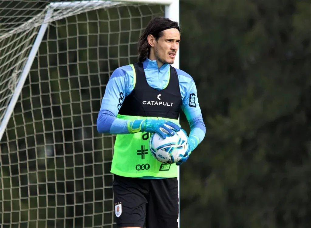 Si bien allí fue suplente, en el fútbol informal que siempre hacen los jugadores en su última práctica Cavani le sacó el puesto a Luis Suárez y fue golero.
