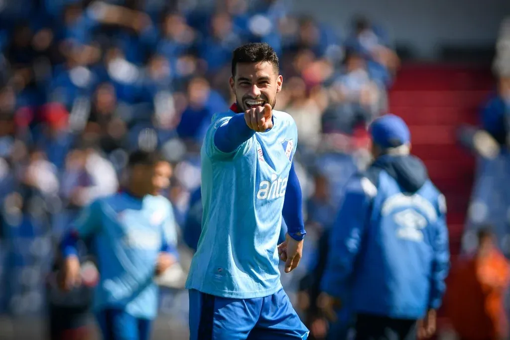Rodrigo Amaral, que se recupera de una rotura de ligamentos, observó la práctica desde el banco de suplentes. Se paraba, y caminaba con dificultad, cuando le pedían para sacarse fotos.
