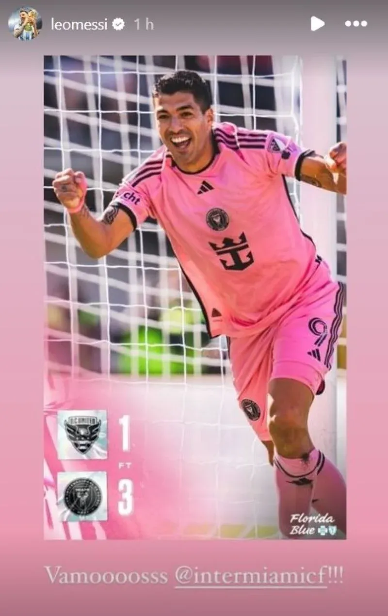 Luego del triunfo por 3-1 de las garzas de La Florida, Lionel Messi subió una historia a su cuenta de Instagram.