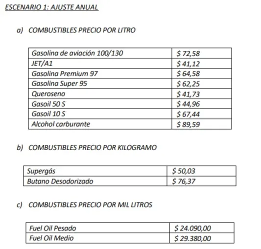 El director en representación del Partido Nacional, Richard Charamelo, informó a El Observador que una primera propuesta que enviaron los técnicos del ente contempla un ajuste promedio de 12,3% para todos los combustibles, para todo el año. Con este escenario, el litro de nafta Súper aumentaría 13,3% (de $ 54,95 a $ 62,25) y el gasoil común 11,3% (de $ 40,40 a $ 44,96).