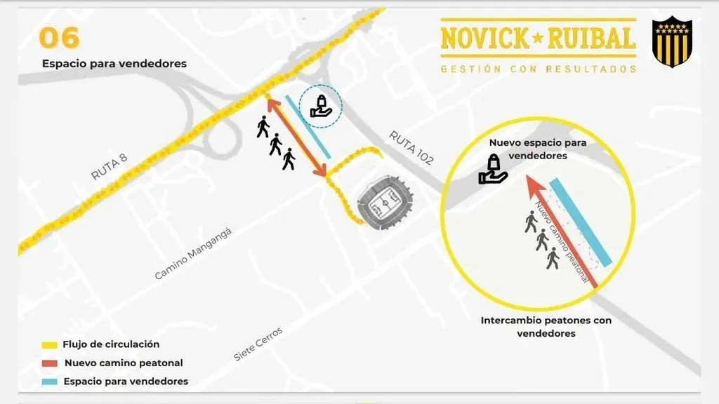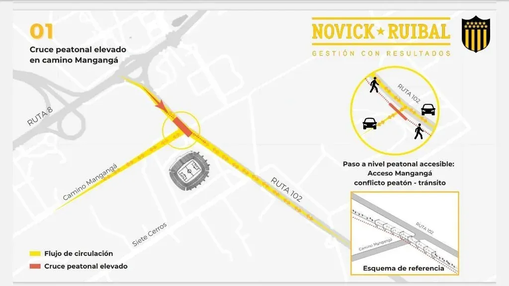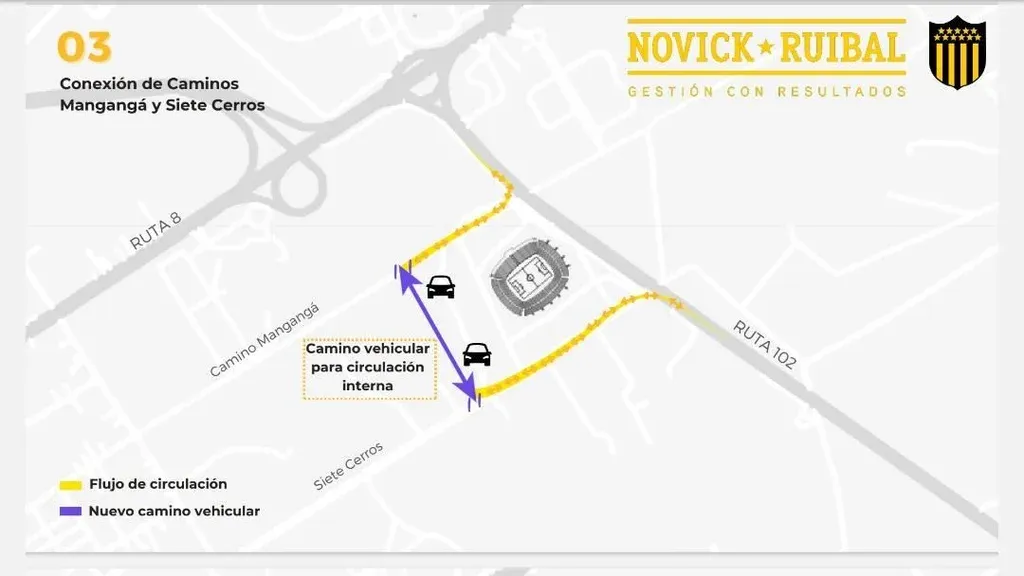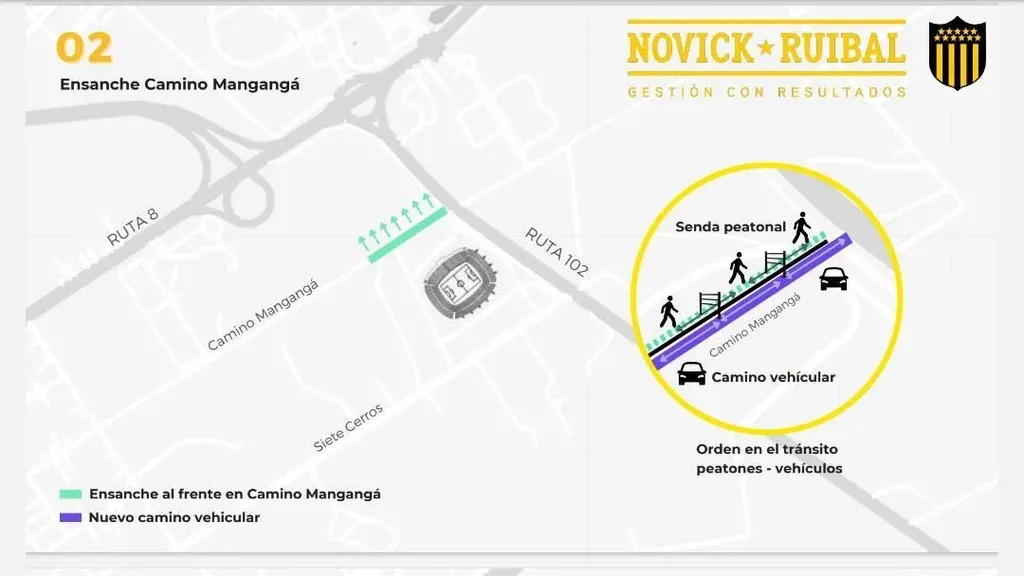 “El ensanche sobre camino Mangangá, sobre todo frente a la Henderson, en algún momento ya lo habíamos empezado a mirar con los dueños del predio y con el Ministerio (de Transporte y Obras Públicas). En los últimos meses hice un acuerdo para pavimentar Siete Cerros. No soy directivo de Peñarol, me acerqué, hablé con el ministro con el que tengo relación laboral, llamé al presidente del club, nos juntamos los tres y habrán visto que se pavimentó e iluminó Siete Cerros. Eso lo hizo el MTOP por una gestión que hicimos para y por Peñarol. Lo mismo se está haciendo en Mangangá. Se va a asfaltar”, explicó Ruibal.