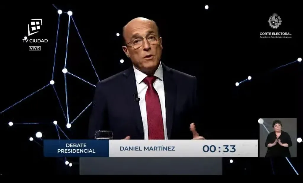 El candidato frenteamplista fue quien abrió el primer bloque del debate, sobre desarrollo económico y empleo. Martínez señaló el crecimiento económico registrado en Uruguay durante los gobiernos del Frente Amplio aunque reconoció que "quedan grandes desafíos". "Lo que nos comprometemos a seguir haciendo es nunca gobernar para los privilegiados", dijo. "Tenemos una inflación de 9% que nos preocupa y sobre la que nos comprometemos a trabajar", agregó después.
