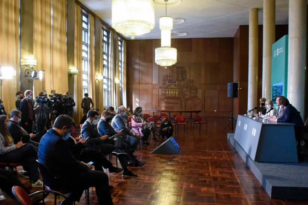 Camilo dos Santos Recibimiento de la intendenta de Montevideo Carolina Cosse al presidente de Conmebol Alejandro Domínguez En esa ocasión también hubo una reunión en el que participaron Domínguez y Lacalle Pou, entre otros, para celebrar la llegada de las primeras dosis y comenzar a trabajar para lo que se conocería después, que fue la adjudicación del Estadio Centenario como sede de las finales únicas de la Libertadores y Sudamericana.