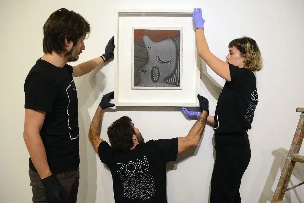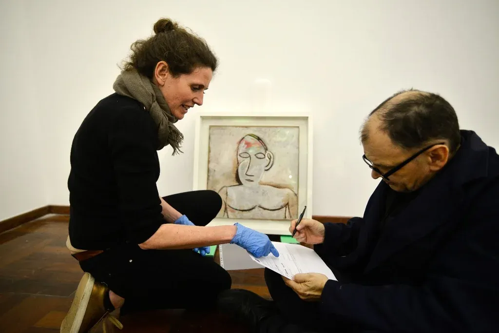 En el primer piso el escenario cambia. En la sala 5 la temperatura baja considerablemente, se escuchan murmullos en inglés, francés, español. En el piso, apoyadas contra la pared, una al lado de la otra, varias piezas de uno de los artistas más geniales e influyentes del último siglo aguardan su turno para ser colocadas en el lugar que les corresponde. Pero antes un grupo de restauradores y conservadores del museo parisino y del montevideano miran con detenimiento que todo, absolutamente todo, esté en el lugar que debe estar. Cada una de las 26 pinturas, siete esculturas, cuatro cerámicas, tres dibujos, una acuarela y un grabado deben llegar e irse sin ningún tipo de alteración. Por eso el montaje tiene una cadencia lenta y cuidadosa. El lunes Picasso en Uruguay recién está calentando los motores y solo un puñado de obras salieron de las cajas que atravesaron en Atlántico en distintos aviones para llegar a la capital más austral del continente.