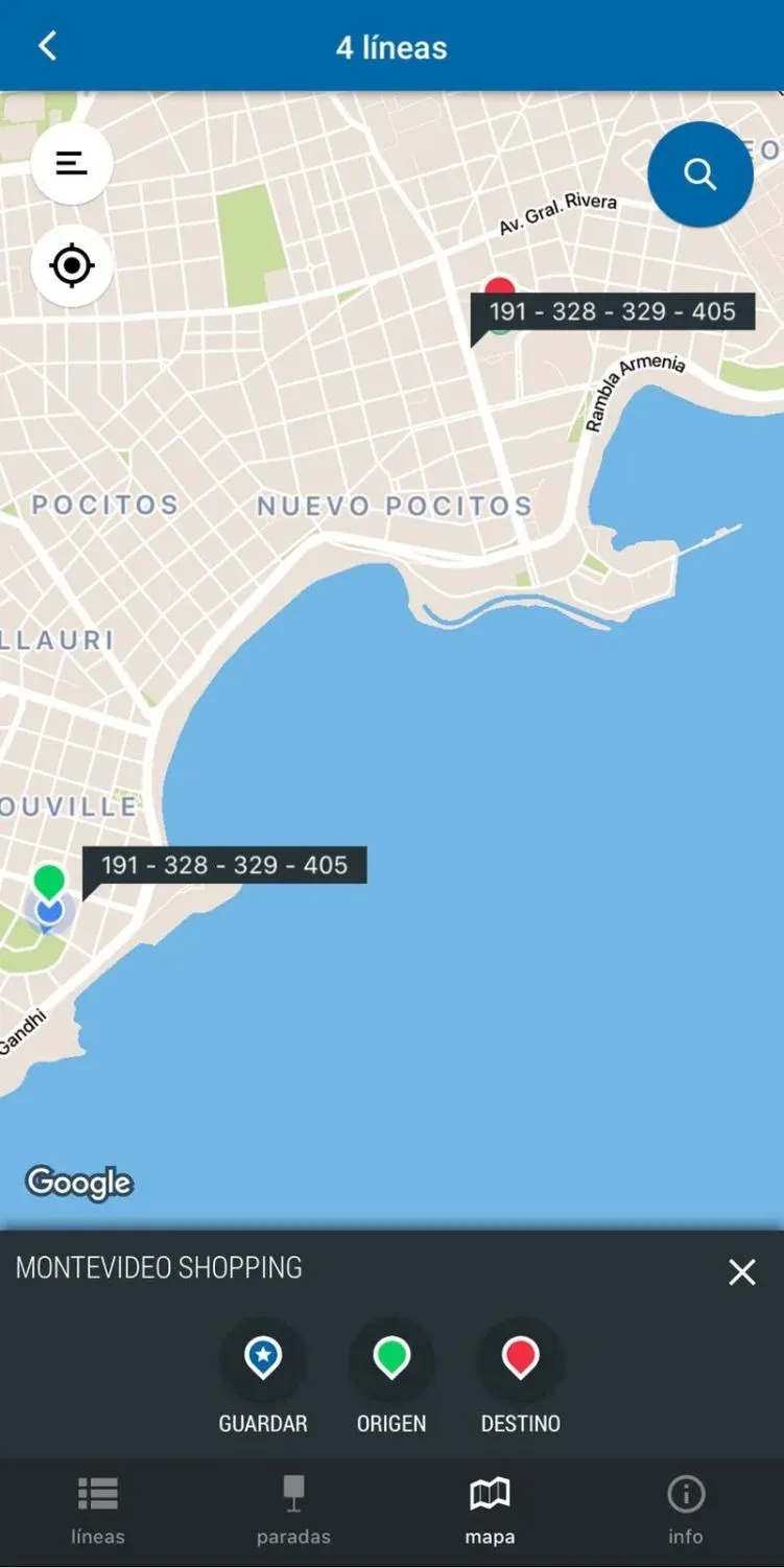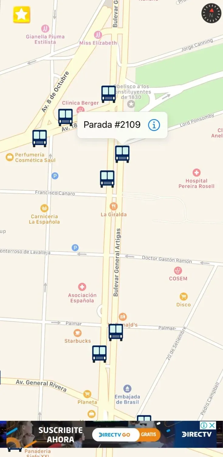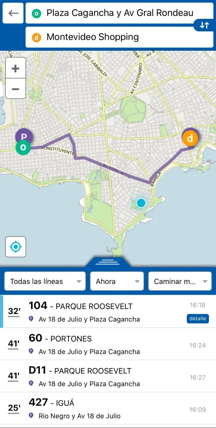 Es la aplicación oficial de la Intendencia de Montevideo. El usuario puede especificar su lugar de origen y destino y el sistema le mostrará cuánto debe caminar para llegar a la parada de ómnibus. Puntuación: en Android 3.94, en iOS 2.6