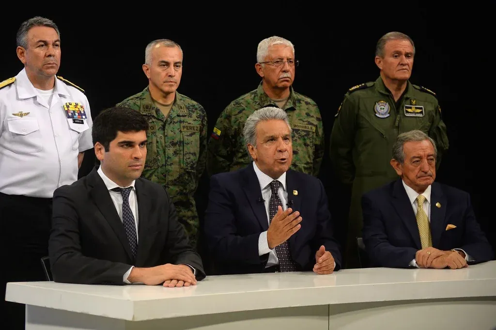 En una aparición en televisión, rodeado del alto mando militar, el gobernante de 66 años anunció el cambio temporal de su despacho en un mensaje a la nación y acusó a Rafael Correa, su antecesor y exaliado que vive en Bélgica, y a Maduro de querer desestabilizar a su gobierno en un proyecto en el que se están "usando" a sectores de aborígenes "aprovechando su movilización, para saquear y destruir a su paso".