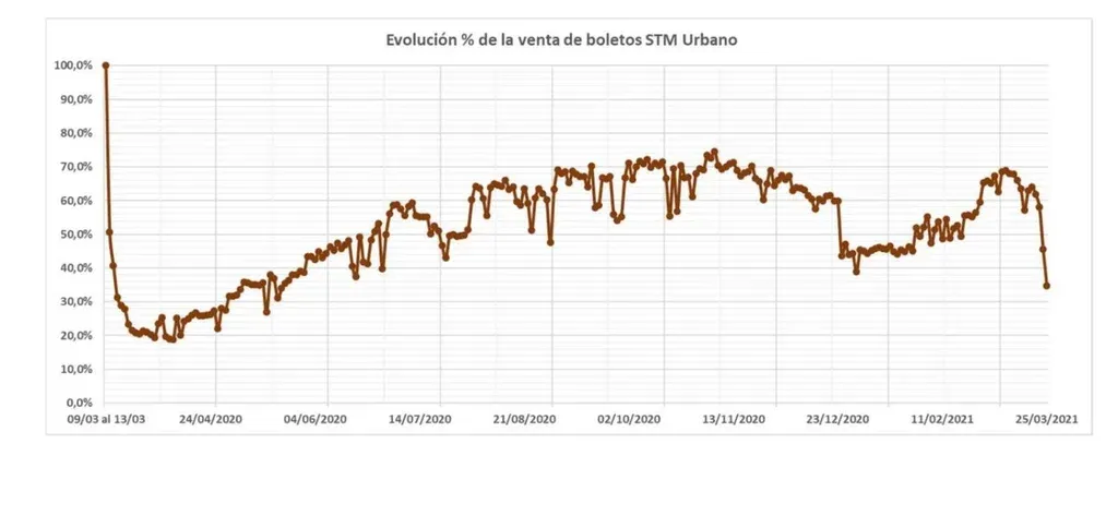 Tras el exhorto del gobierno a teletrabajar y la suspensión de la presencialidad en la enseñanza, la venta de boletos en el transporte capitalino cayó de forma abrupta. A dos días de los anuncios el nivel de transacciones a bordo se situó en un 35%. Desde la IMM esperan que ese nivel se mantenga para el cierre de la Semana Santa.