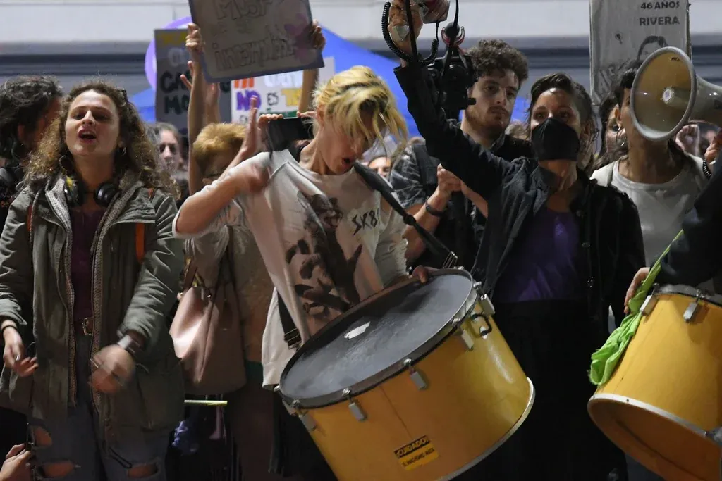 Poco antes de llegar al punto de concentración final, la cuerda de tambores La Melaza, integrada únicamente por mujeres, armó un pasillo al ritmo del candombe para que pasara la movilización. Sobre la vereda estaban también un grupo de mujeres, ex presas políticas, ante quienes la marcha paró varias veces para aplaudir. Una de esas mujeres lloraba y les decía a las demás: “Ellas empezaron la lucha antes que nosotras”. A pesar de los intentos para que los hombres no participaran de la marcha, fueron muchos los que se sumaron a la movilización.