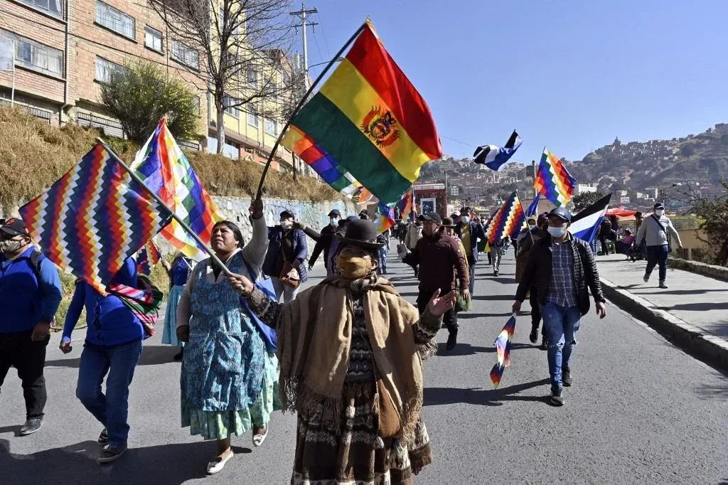 El presidente Luis Arce, el vicepresidente David Choquehuanca y el expresidente Evo Morales encabezan una marcha en respaldo del gobierno que se inició a las ocho de la mañana de este jueves.