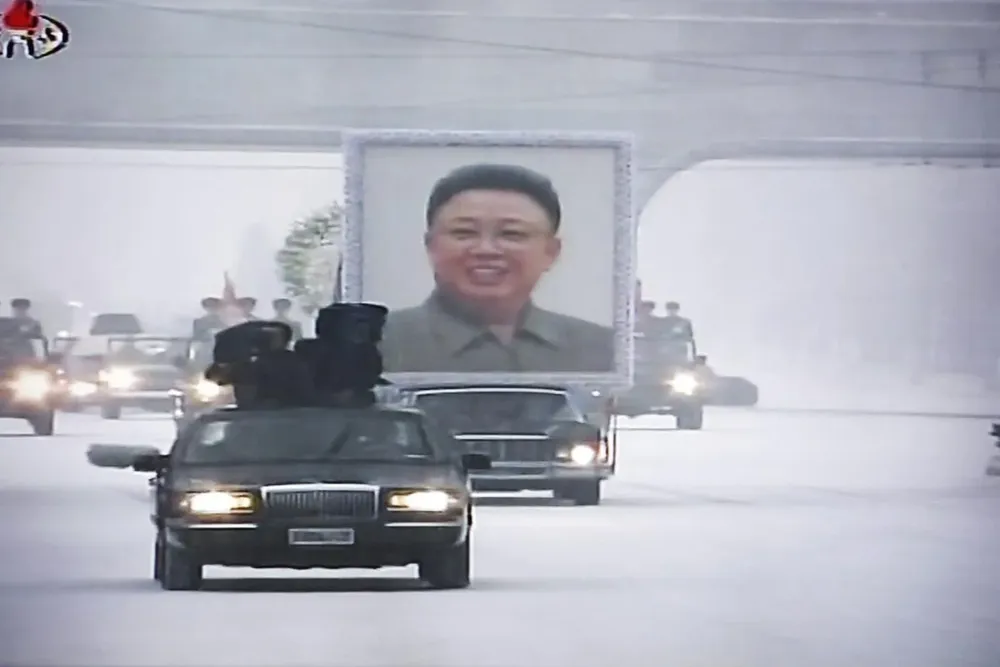 Abría la comitiva un vehículo con un gran retrato de unos tres metros de alto de un sonriente Kim Jong-il, seguido de otro con una gran corona de flores en el techo que anticipaba la marcha del coche fúnebre principal, escoltado por efectivos motorizados de las Fuerzas Armadas.