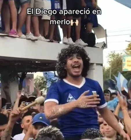 “El Diego apareció en Merlo”, dice la descripción del video en el que se ve al hincha con un peinado similar al que lució Maradona en aquellos años y con una camiseta azul como la de Argentina en 1986.