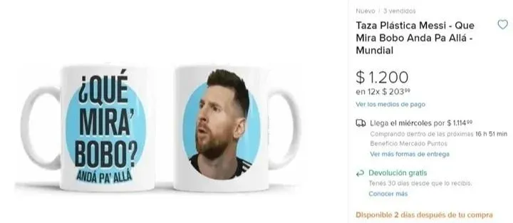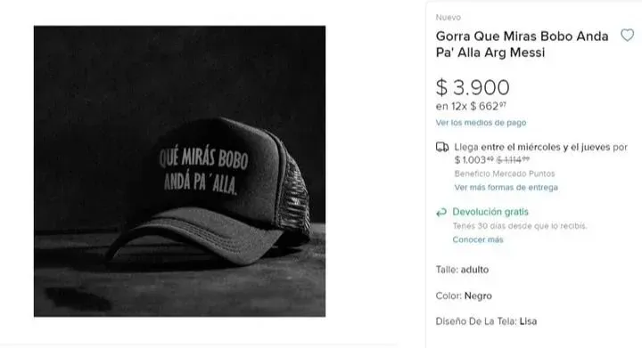 En Mercado Libre ya hay productos de todo tipo a la venta con esa frase ya famosa: desde tazas de $ 1.200 argentinos, a remeras de $ 8.000, y una gorra de $ 3.900.