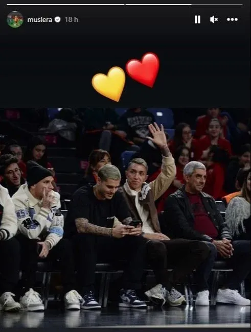 Instagram Muslera, Torreira y su amigo Icardi fueron a ver básquetbol de Galatasaray Muslera, por su parte, compartió una foto con dos corazones con los colores del club.