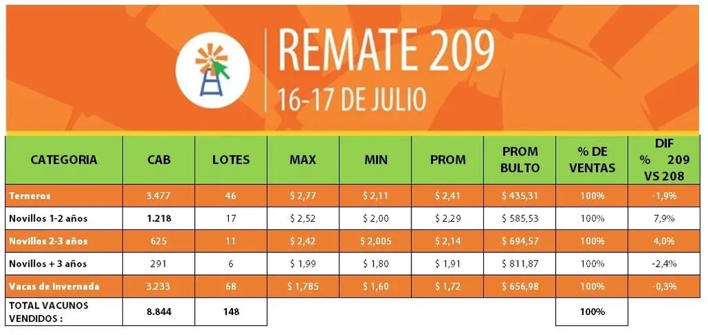 El 209° remate por pantalla de Plaza Rural, que en total considera una oferta conformada por 15.440 vacunos (con lotes anexos) y 802 ovinos, todo certificado, continuará este miércoles 17 de julio, desde la hora 9 y con su base de acciones en el hotel Cottage, en Montevideo.