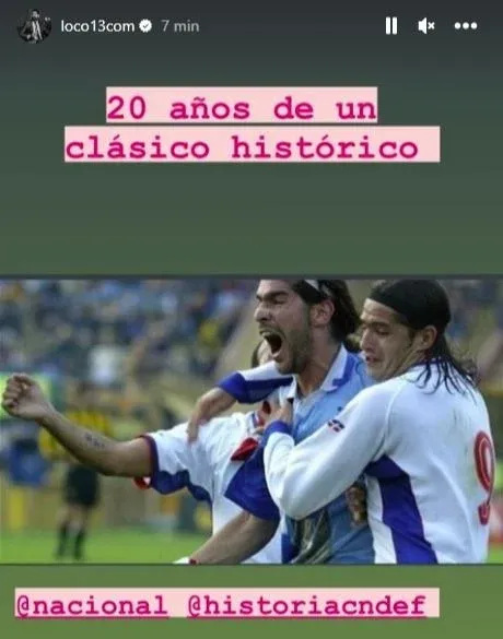 En sus redes, "el Loco" subió una foto de un festejo junto a Gabriel Álvez y comentó: "20 años de un clásico histórico".