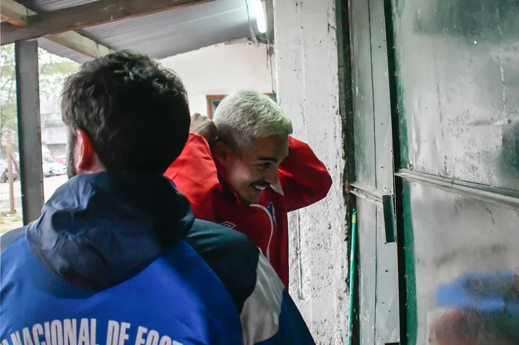 Camilo dos Santos Axel Müller, hoy en Wanderers, fue a saludar a sus excompañeros Como cuando llegaron al predio, los futbolistas ayudaron a los utileros a llevar los materiales hasta el ómnibus y regresaron a Los Céspedes.