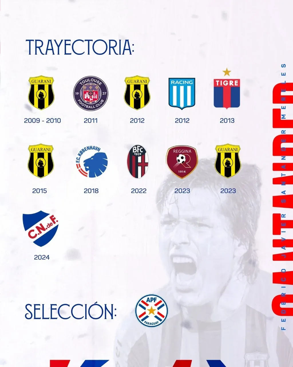 En su web, Nacional destacó que Santander "en su última temporada en el equipo paraguayo jugó 25 partidos, en los cuales anotó 5 goles por el torneo local y 6 goles en 9 partidos por Copa Sudamericana".