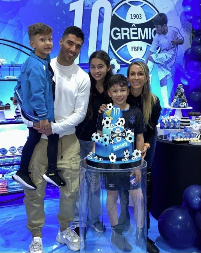 Instagram Las fotos del cumple de Benjamín Suárez junto a su familia El niño, que cumplió 10 años y lo festejó con un fútbol 5 con los amigos y su padre, se puso una camiseta de Gremio y un short de Nacional, cuyo escudo se pudo ver en las imágenes.