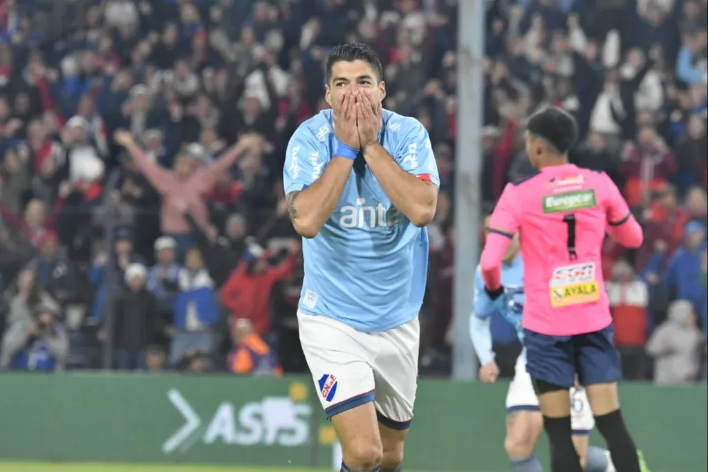 Luis Suárez de Nacional no puede creer que su remate dio en el palo