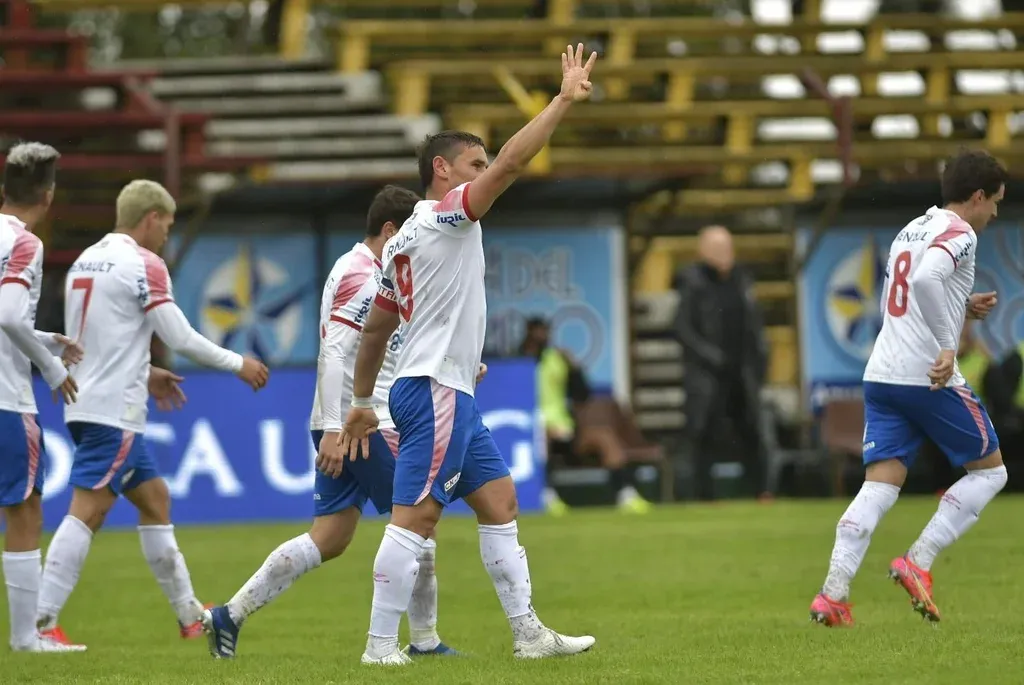 Gonzalo Bergessio festeja el primer gol tricolor ante Progreso