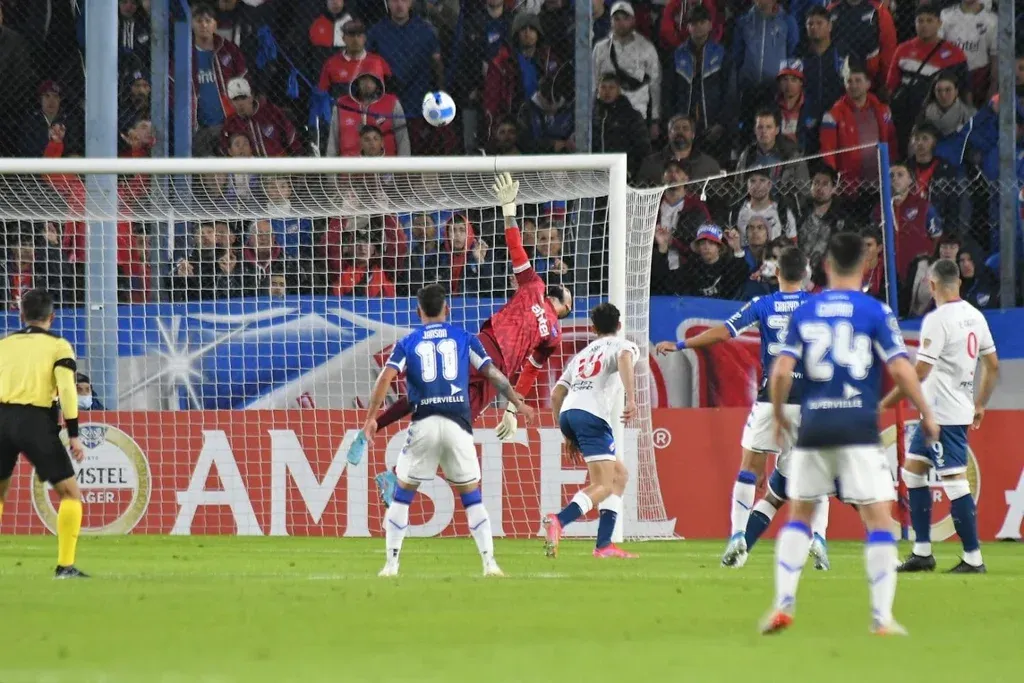Leonardo Carreño Nicolás Garayalde de Vélez Sarsfield, estrelló su remate en el travesaño, ante el vuelo de Martín Rodríguez de Nacional