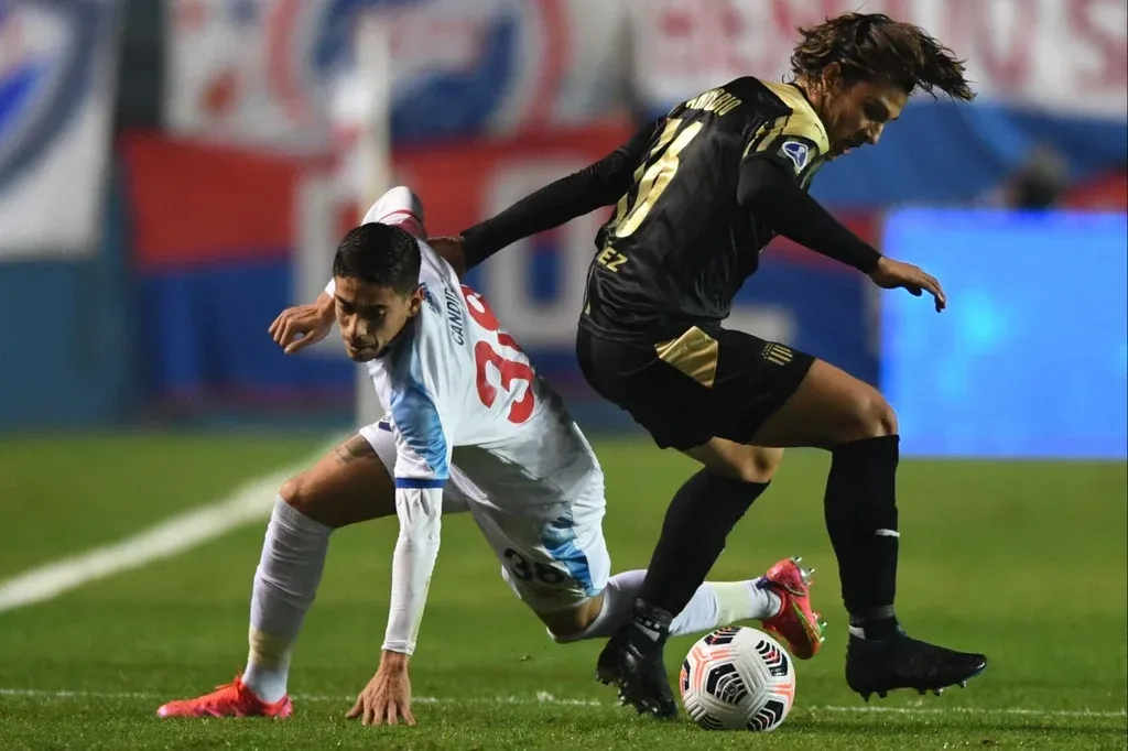 Camilo Cándido pelea con Agustín Canobbio por la pelota