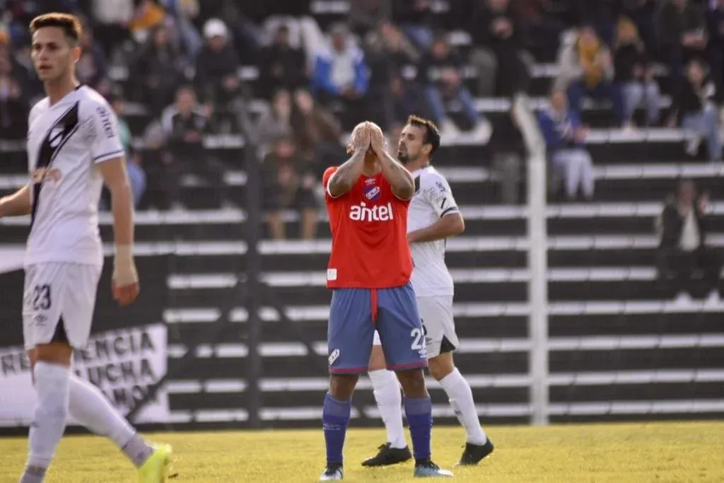 Diego Zabala de Nacional se toma la cara tras marrar un gol ante Danubio