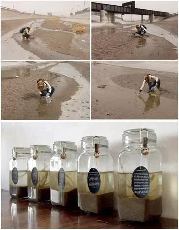 Realizó una breve investigación sobre algunos migrantes ahogados y muertos en el Río Bravo (en la frontera de Ciudad Juárez Mx/El Paso Tx, EU) . Rescató historias sobre su intento de cruce y fracaso, sus documentos, la fecha en la que fueron encontrados y en algunas ocasiones sus nombres, pues no todos han sido identificados, por lo que van a parar a la “fosa común”. Recogió arena, hierbas y un poco del agua que aun corre por esta frontera, los guardó en cinco frascos de cierre sellado y por fuera colocó una biografía de la persona ahogada o en dados casos asesinada por la border patrol.