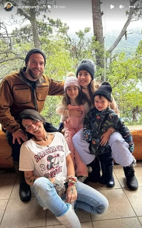 El futbolista uruguayo Nahitan Nández está de vacaciones en el sur argentino, donde se reencontró con su familia, la que se sumó a sus días de descanso.