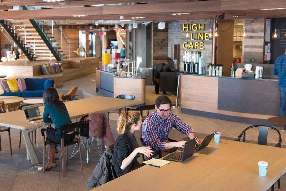 “En Boston Consulting Group tenían una oficina muy tradicional en Park Avenue (Nueva York), buscaron atrapar a la generación Starbucks y construyeron una oficina donde la recepción es un gran café. Entrás a ese ruidoso café y no hay escritorios de recepción ni salas de espera. Es como un café que elegís al salir”. Esta oficina está ubicada en el edificio Hudson Yards, uno de los desarrollos inmobiliarios más grandes en la historia de Estados Unidos.