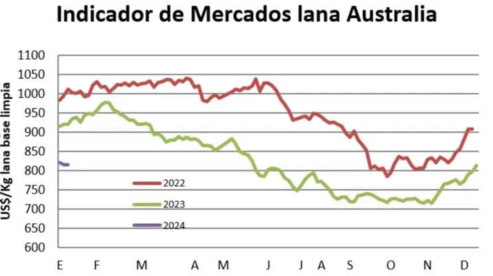 Cerró la semana en US$ 8,16 por kilo base limpia, dos centavos por encima que la última referencia del 2023, con la oferta semanal más voluminosa en ocho meses, que rondó los 51.000 fardos.