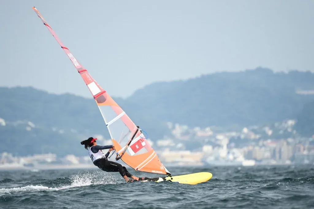 Amanda Kai Ling en windsurf RS:X en la bahía Enoshima de Fujisawa