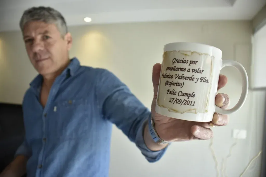La taza que le regaló en 2011 Federico Valverde a Néstor Goncálvez: "Gracias por enseñarme a volar", le escribió en la misma