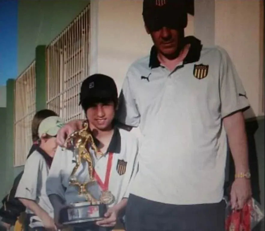 Diego Rossi siendo aún un niño en Peñarol, junto a Néstor Goncálvez