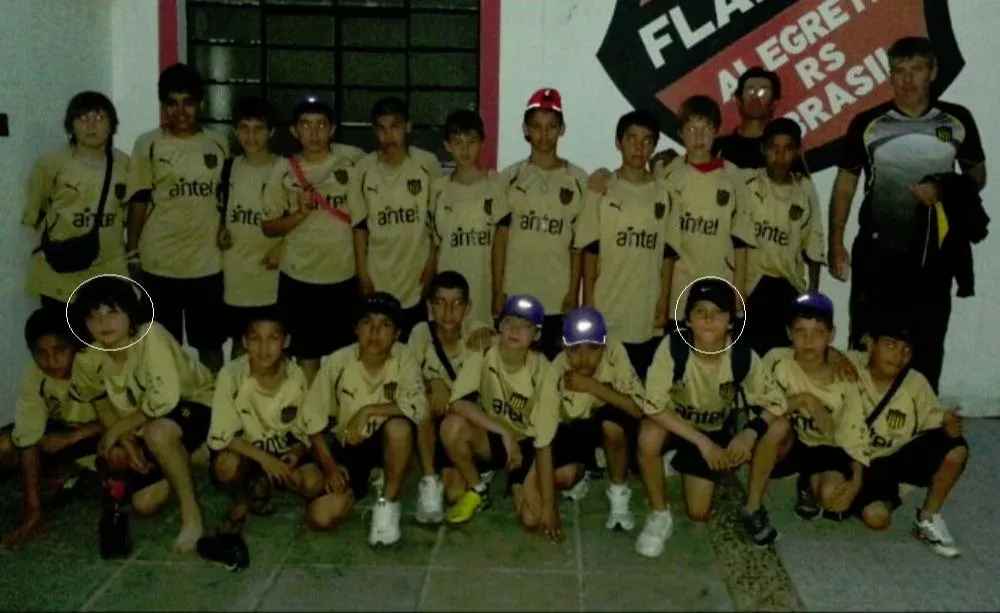 Agustín Álvarez Martínez junto a Facundo Pellistri en el primer viaje a Alegrete, Brasil, en 2012, con Néstor Goncálvez
