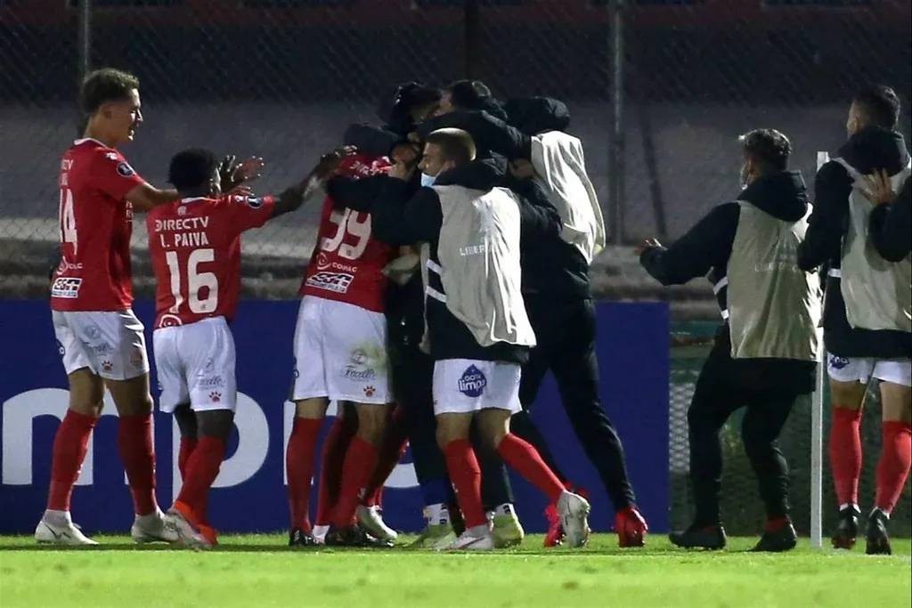 EFE/Ernesto Ryan POOL El festejo de los jugadores de Rentistas en el gol de su equipo contra Sao Paulo