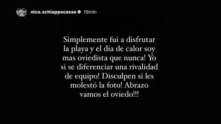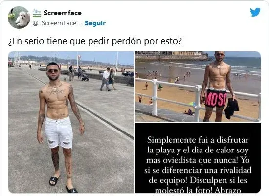 "Simplemente fui a disfrutar de la playa y el día de calor, ¡soy más oviedista que nunca! ¡Yo sí sé diferenciar una rivalidad de equipo! Disculpen si les molestó la foto, abrazo", expresó.