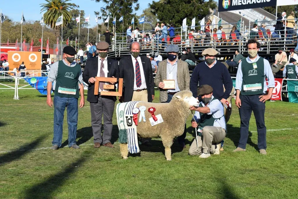Gran Campeona en el pedigrí en Corriedale fue el ejemplar del brete 670, de cabaña La Estela. Uno de los directores de otra firma muy premiada en la Expo Prado, Mariano Rodríguez Bidegain, señaló: “Es un Prado raro, mi padre –Jorge Rodríguez Britos– no pudo venir por la pandemia, por precaución, la familia siguió la jura por televisión y este premio es especialmente para ellos”.